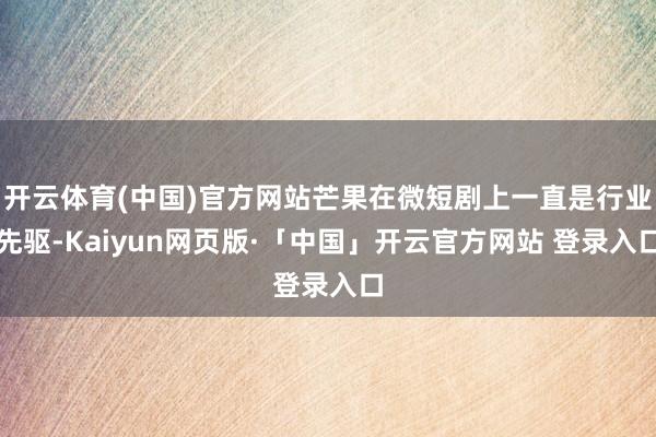 开云体育(中国)官方网站芒果在微短剧上一直是行业先驱-Kaiyun网页版·「中国」开云官方网站 登录入口