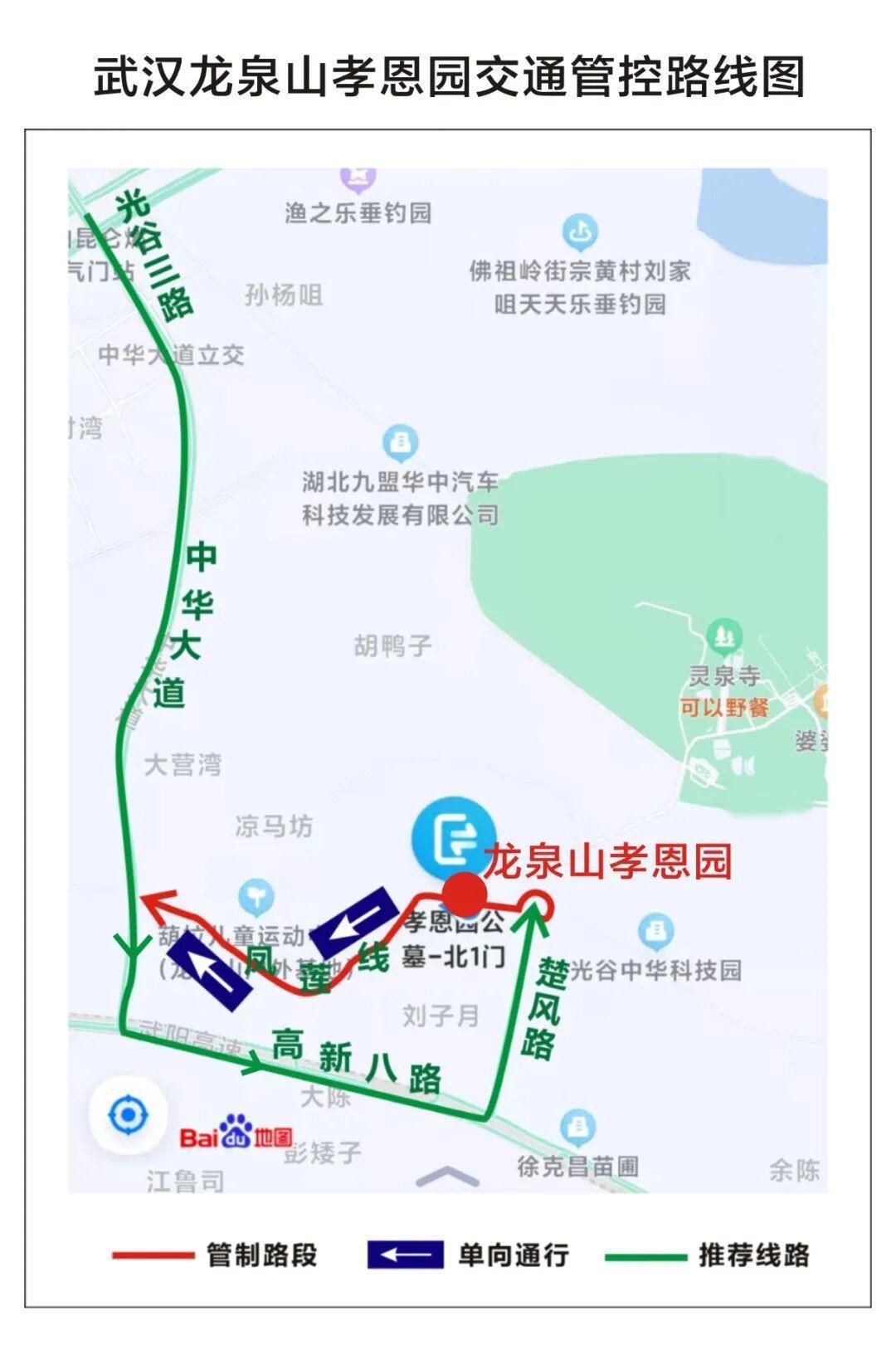 祭扫岑岭行驶蹊径:光谷三路——中华大路——高新八路——凤莲线。