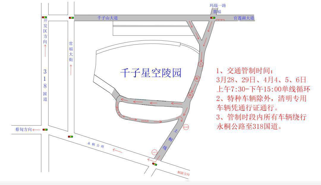 3月28日、3月29日、4月4日、4月5日、4月6日,逐日7:00-15:00,园区相近说念路将实行临时交通处置措施;交管部门在其他时候也会凭证省墓东说念主流、车流情况灵活收受临时管控措施,请列位市民恪守现场交警及责任主说念主员携带。