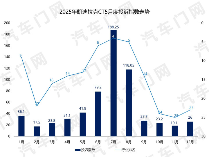 而从年度走势来看,2025年大部分技巧里,凯迪拉克CT5的单月投诉指数齐在50以下。6-8月,CT5的投诉指数出现了一次岑岭。也恰是此次大幅波动,平直推高了CT5的年度全体投诉指数。