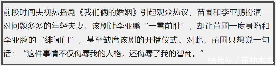 苗圃和李亚鹏曾结合过电视剧《咱们的婚配》,亦然老一又友了。因为在剧里演情侣,还一度被传出过绯闻,搞恰那时苗圃为了避嫌王人莫得出席开播典礼,过后被问起,苗圃恢复称“这件事情不仅侮辱我的东说念主格,还侮辱了我的才调”。