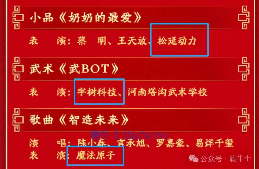 节目单泄露,松延能源、宇树科技、魔法原子三产品身智能机器东谈主公司将登上扮演舞台。
