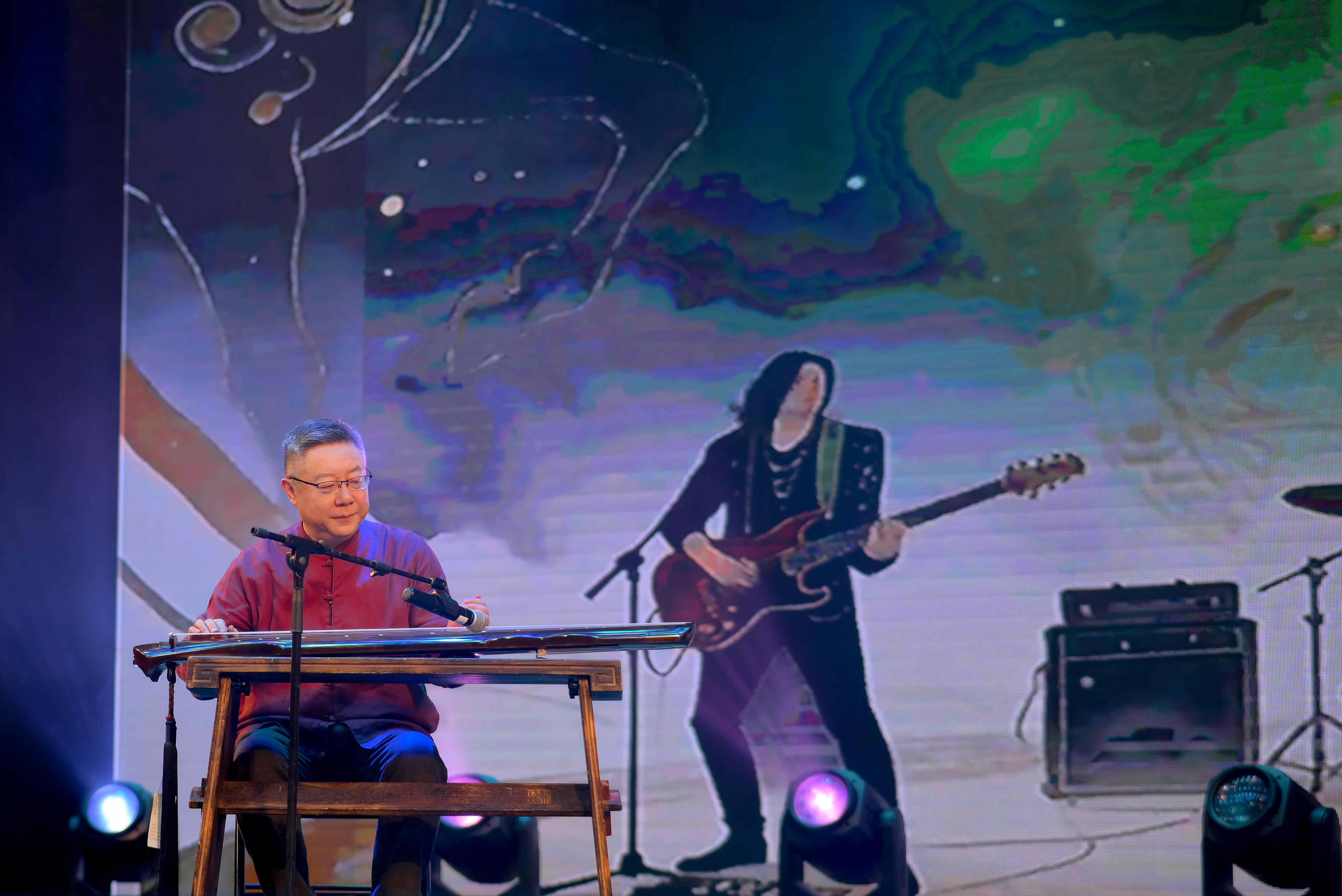 “摇滚乐队,80年代末我过问过,我弹电吉他,频频献艺、走穴,既然让摇滚和古琴和会,那古琴就不成只弹出音,得让古琴融入摇滚乐队,与乐手们嗅觉如胶似漆,我昭彰编曲者念念要的嗅觉,是以在演奏上有所变化。”王笑天说。