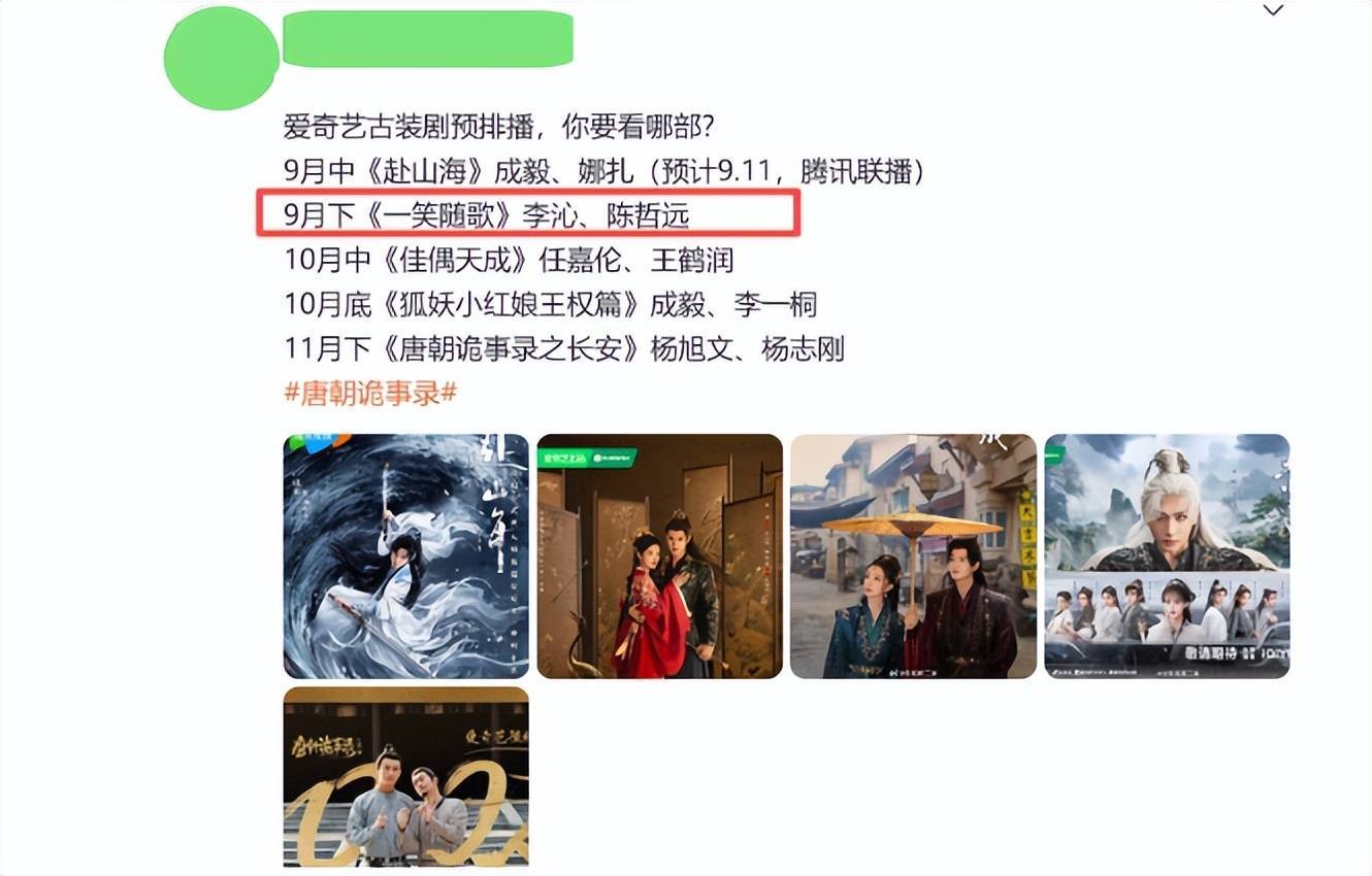 网传由李沁领衔主演的《一笑随歌》将于本月下旬上线奇异果平台全网独播!