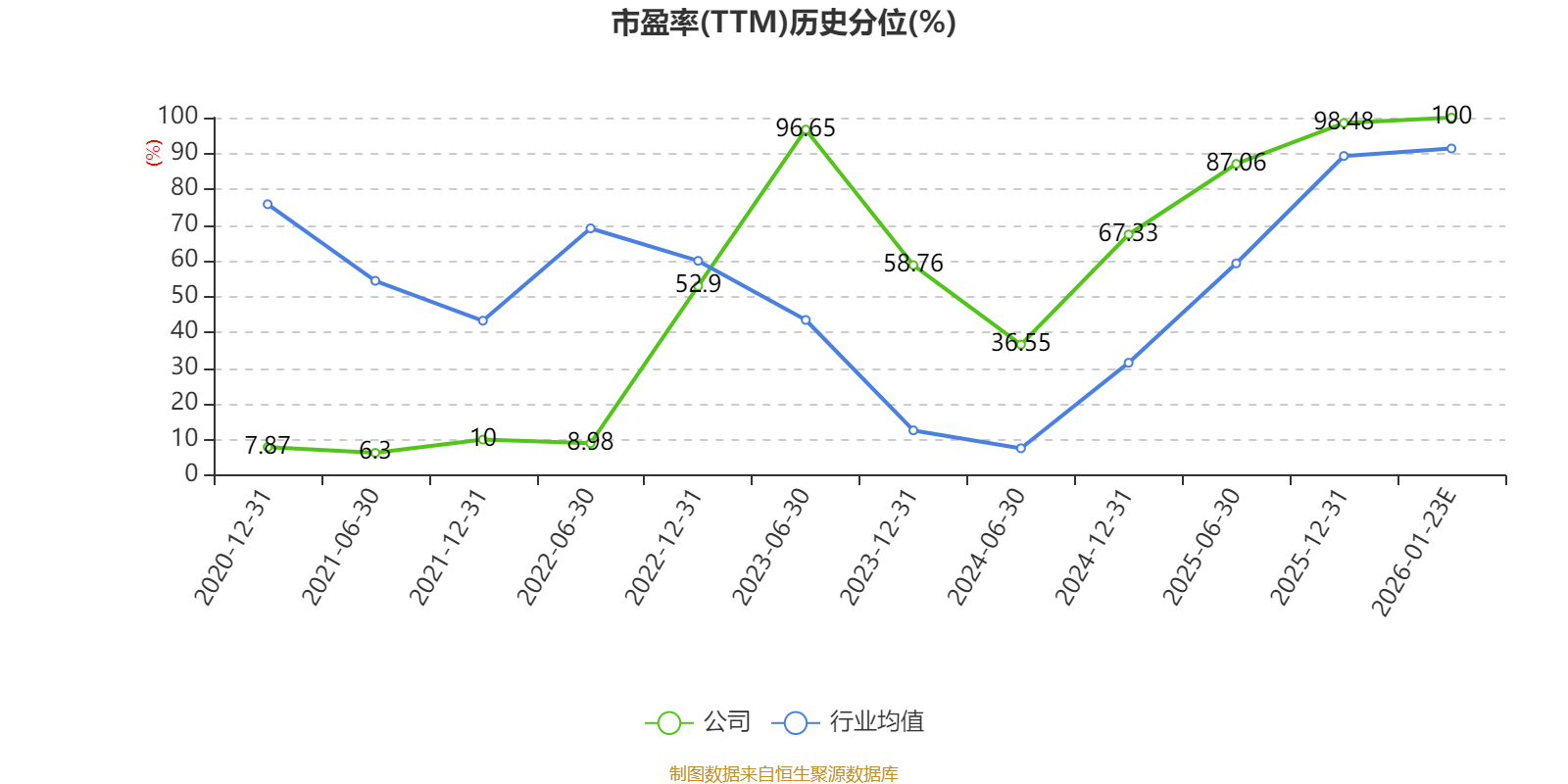 以本次涌现事迹预报均值设想,公司频年市盈率(TTM)图如下所示: