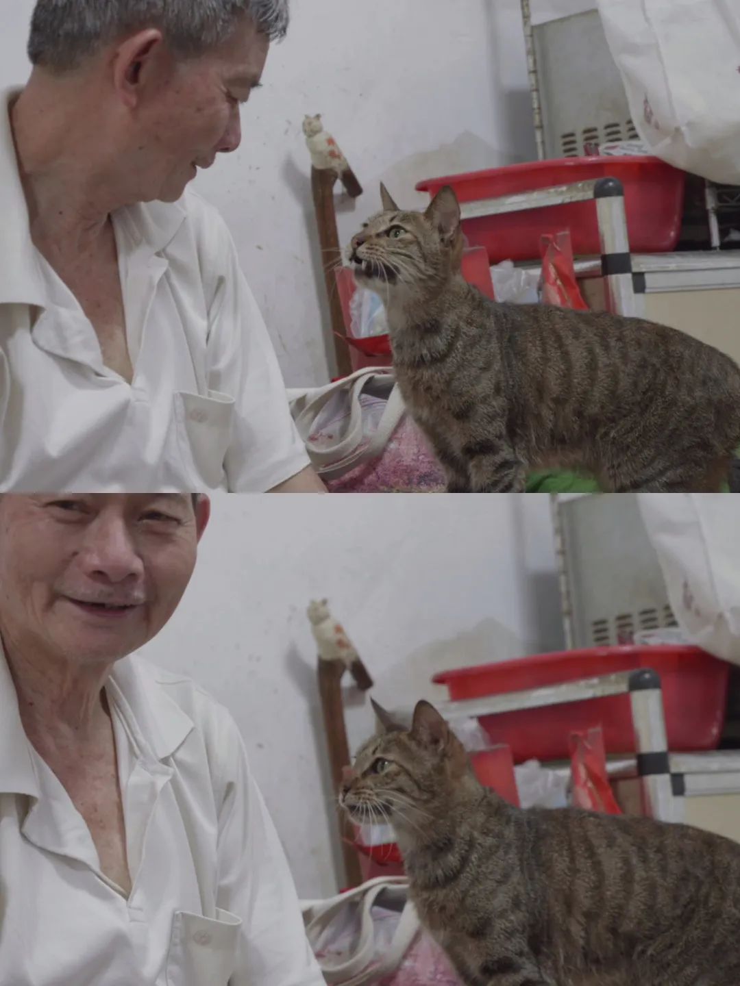 有一次准备外出前,猫叔的高血压犯了,看着包里备好的猫粮猫饭,念念念念山上的猫还饿着等他喂食,他如故强撑着出了门。那天猫叔连摔了四跤,到家时脸齐肿了。还有更惊恐的一次,猫叔一大早就上山喂猫,一直到下昼三点多齐还没到家。娥姐急得满房子打转转,拖着行径不太便捷的腿脚,歪歪倒倒地外出沿途找。